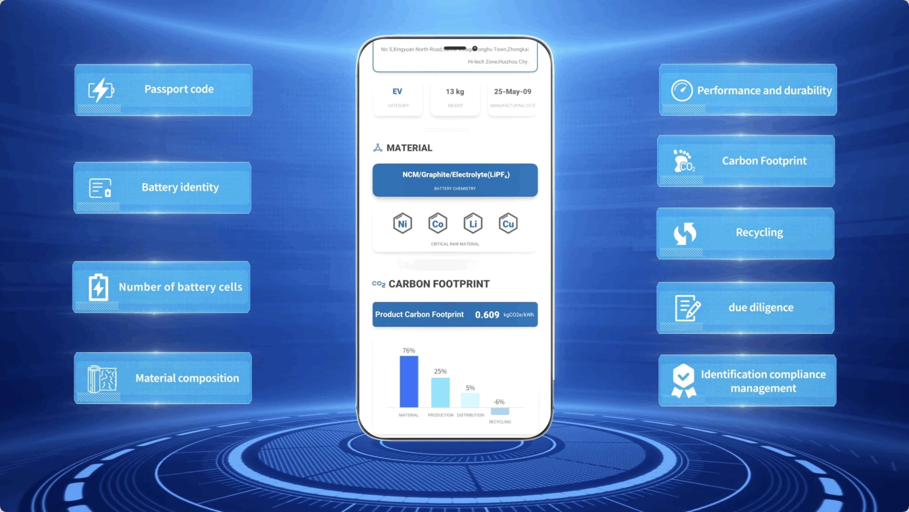 亿纬锂能以数字技术驱动全球电池产业绿色循环发展,实现2022-2025年生产端单位碳排下降60%+、单位产品能耗降低55%+的卓越成效。通过部署AI能效最优曲线模型,对空调、空压等核心用能系统进行实时诊断与动态调优,带动系统能耗降低5%-10%。在产品全生命周期减碳层面,创新应用“电池护照”,为每颗电池赋予唯一数字身份ID,覆盖产业链超20万个数据节点,为电池的梯次利用与精准回收提供可靠数据基础。亿纬锂能推进全价值链条协同降碳,通过可再生能源利用、再生料应用、节能技术升级等举措持续发力,推动产品全生命周期碳足迹降低 15%。